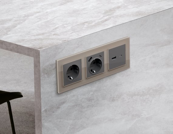 Рамка ALFA Platos (Серо-бежевый Стекло закаленное натуральное) 4-ая AF380604