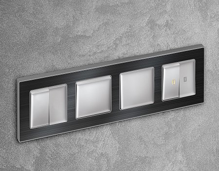 Лицевая панель ALFA (Серебро глянец) для 2-клавишных выключателей QUANT AP4030