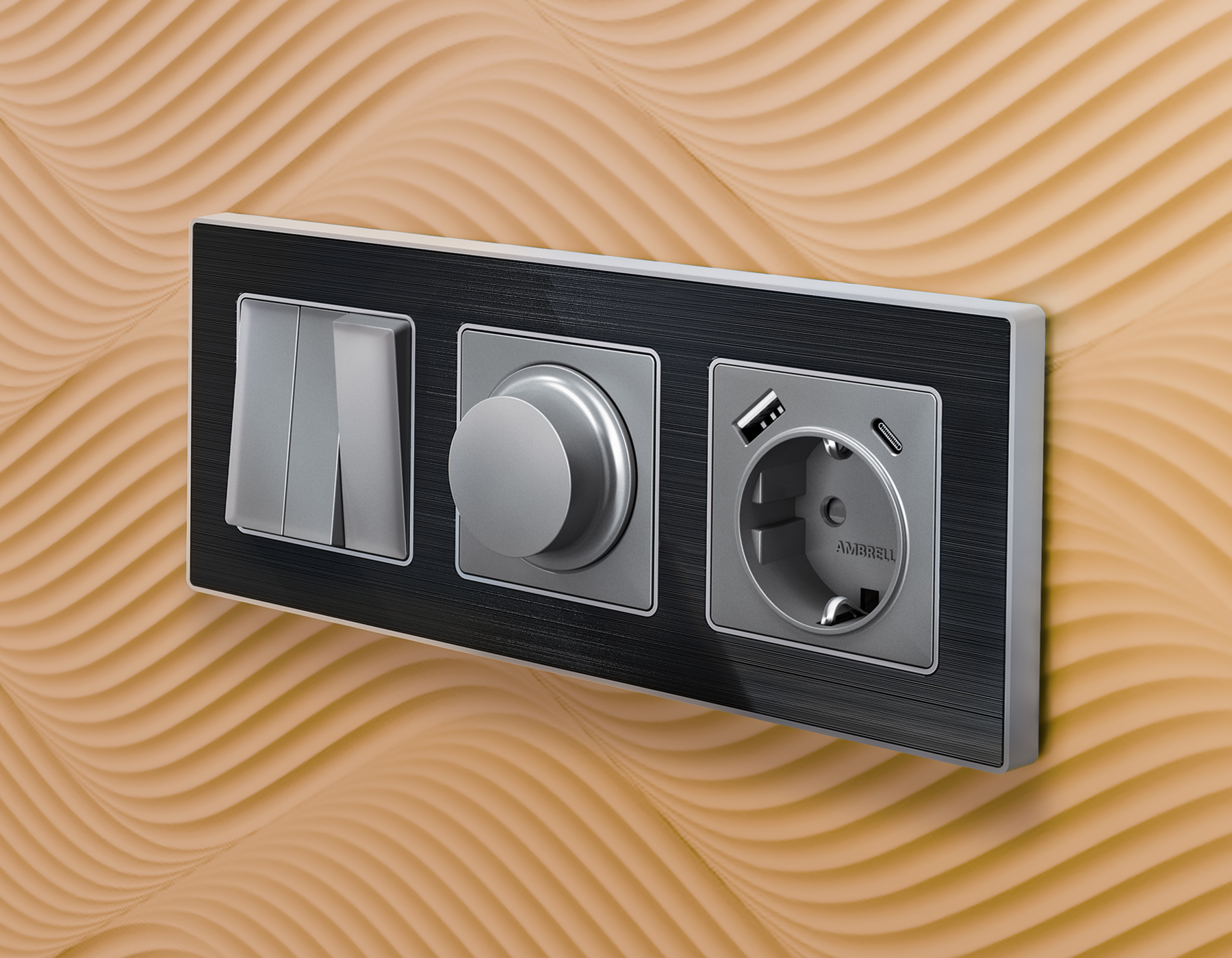 Ambrella AP5050 Лицевая панель ALFA (Сталь матовый) для 3-клавишных выключателей