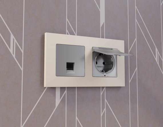 Лицевая панель ALFA (Сталь матовый) для электрической розетки с заземлением со шторками и защитной крышкой IP44 QUANT AP5080