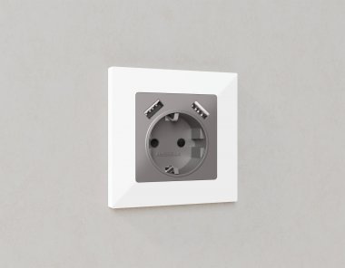 Лицевая панель ALFA (Сталь матовый) для электрической розетки с заземлением со шторками 2USB тип A+A QUANT AP5090