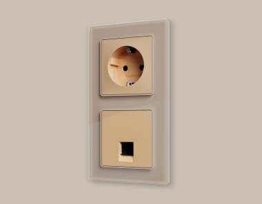 Лицевая панель ALFA (Шампань) для компьютерной/телефонной розетки RJ-45/RJ-11 QUANT AP6120