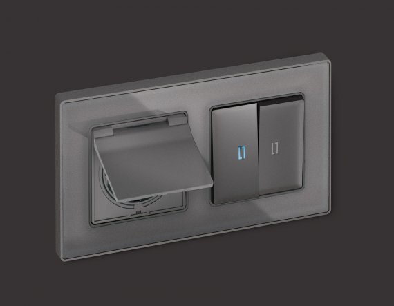 Лицевая панель ALFA (Антрацит серый) для электрической розетки с заземлением со шторками и защитной крышкой IP44 QUANT AP6580