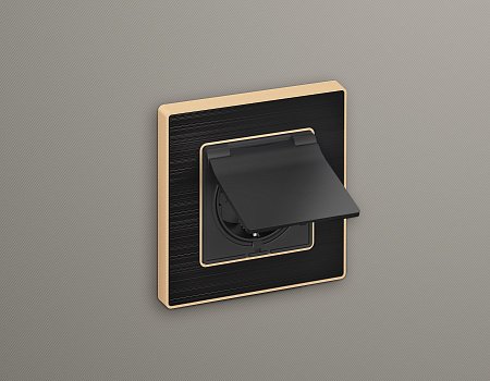 Лицевая панель ALFA (Графит Мягкое касание) для электрической розетки с заземлением со шторками и защитной крышкой IP44 QUANT AP9080