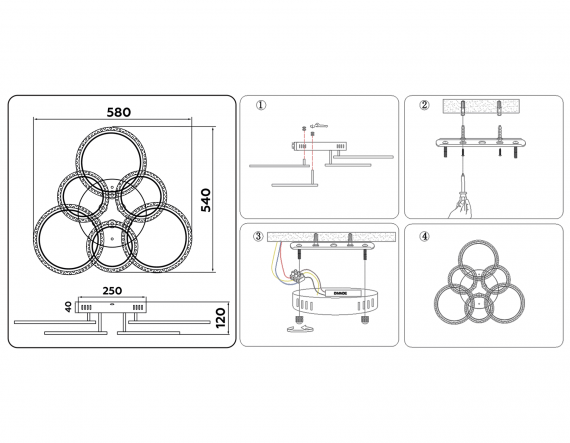Потолочный светодиодный светильник с пультом FA414/3+3 CH хром 90W 580*540*120 (ПДУ РАДИО 2.4)