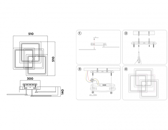 Ambrella FA535 Потолочный светодиодный светильник с пультом 118W 510*510*140