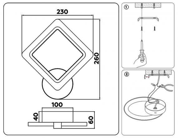 Настенный светодиодный светильник FA539 WH белый 6400K/3000K/4200K 15W 260*230*60