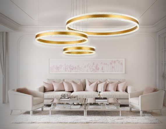 Светильник светодиодный подвесной управляемый FA6203/3 GD золото 245W 3000K+6400K/3000K/6400K/4200K+4200K 1230*800*940 (ПДУ РАДИО 2.4G)