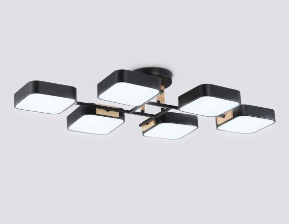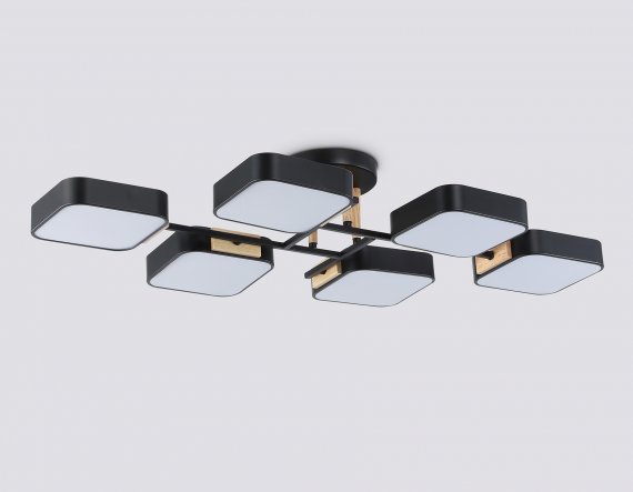 Светильник светодиодный подвесной FL4887/6 BK/WD черный/дерево 108W 3000-6000K 850*430*140 (без ПДУ)