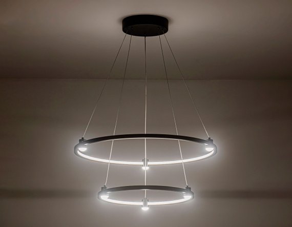 Светильник подвесной светодиодный FL5506/2+6 BK черный 45W 3000K/4200K/6400K D600/400*1300 (без ПДУ)