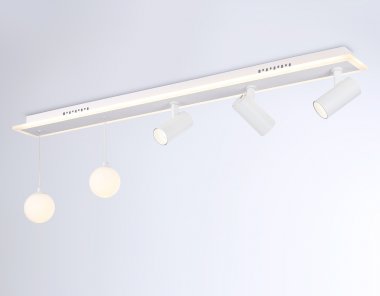 Потолочный светодиодный светильник со сменной лампой и пультом управления FL66201/1+5 WH белый 67W 3000K-6400K+G9/2 1000*100*400 (ПДУ ИК)