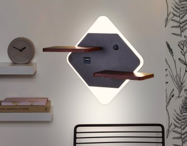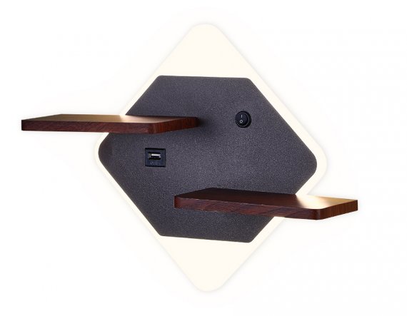 Настенный светодиодный светильник с выключателем, USB и полкой FW101 CF/WD кофе/дерево LED 3000K/4200K/6400K 12W 340*250*105