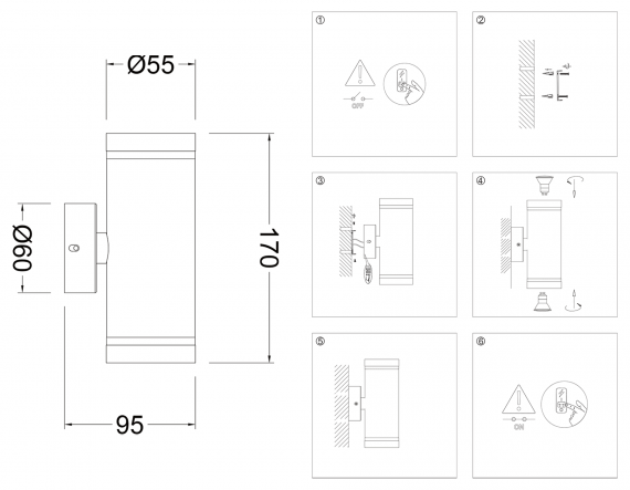 Ambrella FW2488 Настенный светильник со сменной лампой GU10 12W 170*55*95