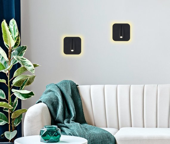 Настенный поворотный светодиодный светильник с выключателем FW253 BK/S черный/песок LED 4200K+3000K 12W 140*140*110