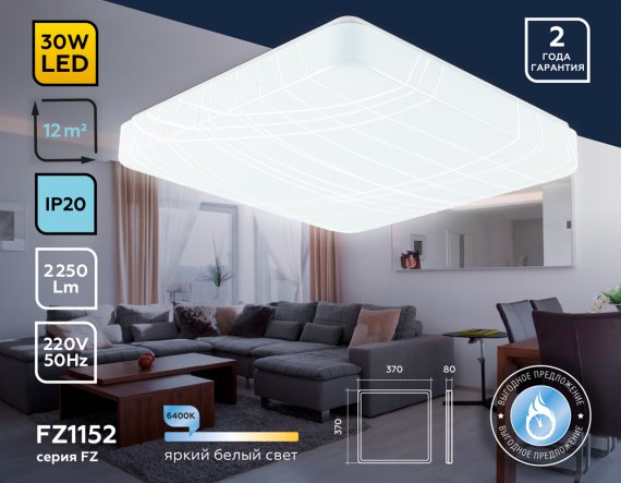 Потолочный светодиодный светильник FZ1152 WH белый 30W 6400K 370*370*85 (Без ПДУ)