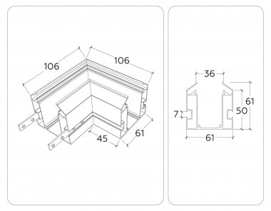 Коннектор угловой для корпуса в натяжной потолок Magnetic 220V 100*100*61 GL1043 BK черный (соединители в комплекте)
