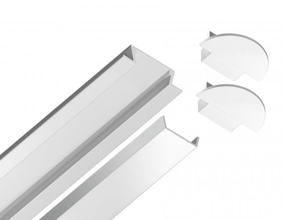 Алюминиевый профиль встраиваемый GP1001WH белый/матовый рассеиватель 2000*21.5*6.8, 2 заглушки в комплекте (для ленты до 11мм)
