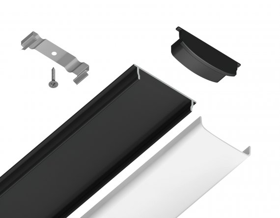 Алюминиевый профиль накладной гибкий GP1600BK черный/матовый рассеиватель 2000*18*4, 2 заглушки, 4 крепления в комплекте (для ленты до 15мм)