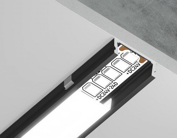 Алюминиевый профиль накладной GP1700BK черный/матовый рассеиватель 2000*15.5*6, 2 заглушки, 4 крепления в комплекте (для ленты до 11мм)