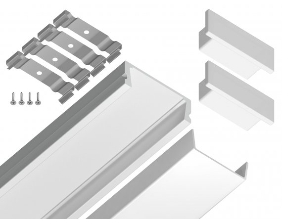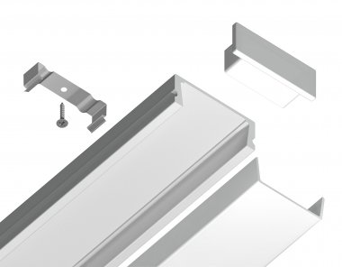 Алюминиевый профиль накладной GP1700WH белый/матовый рассеиватель 2000*15.5*6, 2 заглушки, 4 крепления в комплекте (для ленты до 11мм)