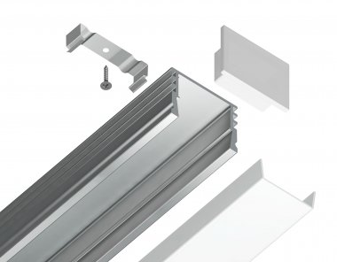 Алюминиевый профиль накладной GP1750AL серебро/матовый рассеиватель 2000*15.7*12, 2 заглушки, 4 крепления в комплекте (для ленты до 12мм)
