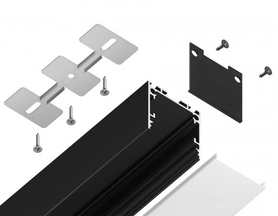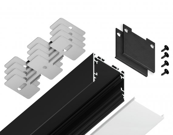 Алюминиевый профиль накладной/подвесной "Profile System" GP2500BK черный/матовый рассеиватель 2000*25*25, 2 заглушки, 4 крепления в комплекте (для ленты до 23мм)