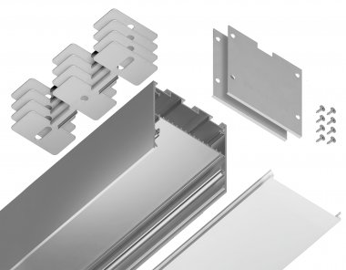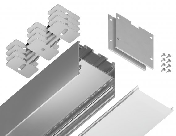 Алюминиевый профиль накладной/подвесной "Profile System" GP3100AL серебро/матовый рассеиватель 2000*50*50, 2 заглушки, 4 крепления в комплекте (для ленты до 41,4мм)