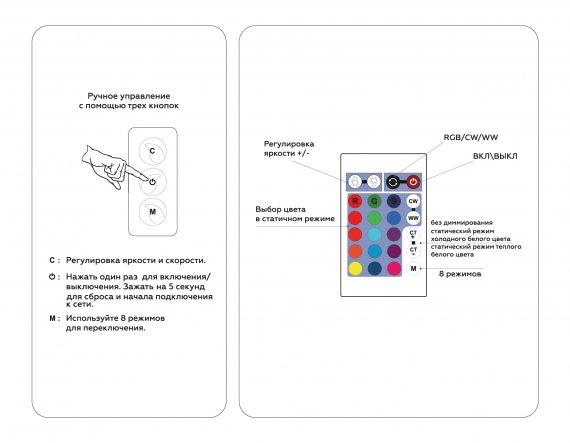 Контроллер WIFI Tuya для светодиодных лент RGB+CCT с управлением белого света c инфракрасным пультом 10A 12V 120W/ 24V 240W GS11601 (CR2025)