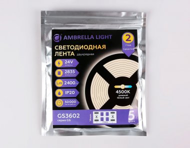 Ambrella GS3602 Светодиодная лента двухрядная 2835 204Led/ 20W m/ 24V IP20