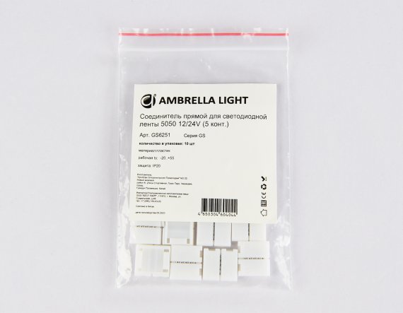 Соединитель прямой для светодиодной ленты 5050 12/24V (5 конт.) GS6251 (10шт)