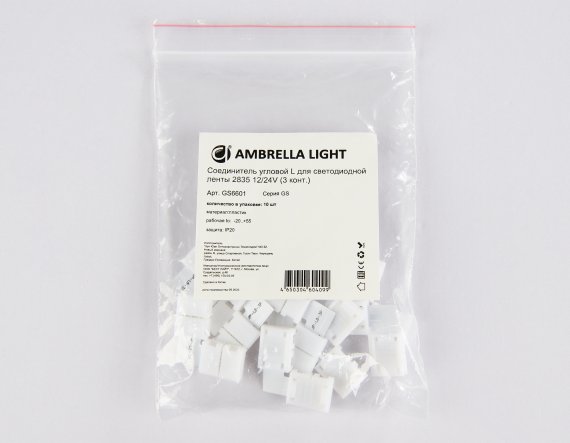 Ambrella GS6601 Соединитель угловой L для светодиодной ленты 2835 12/24V