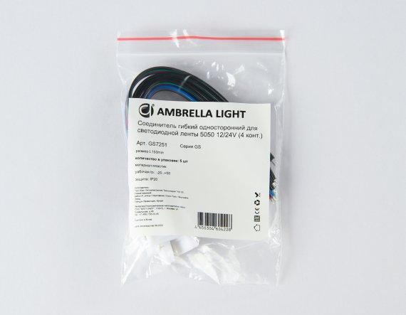 Соединитель гибкий односторонний для светодиодной ленты 5050 12/24V (4 конт.) 150 мм GS7251 (5шт)