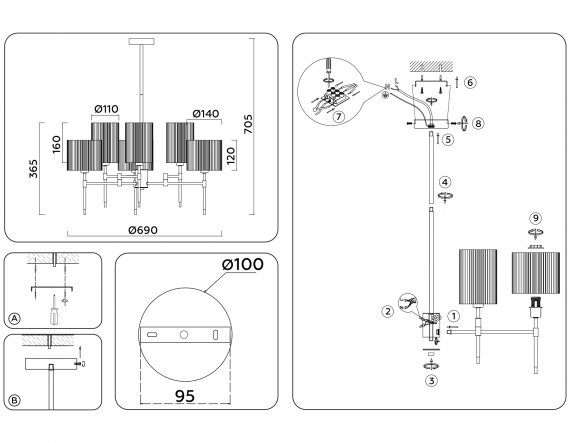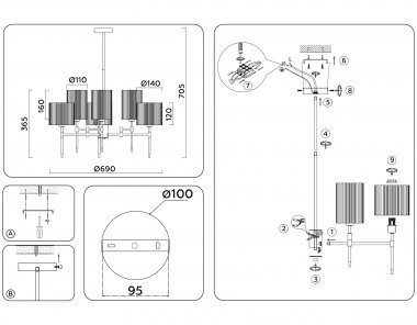 Ambrella LH72381 Светильник на штанге E14*6 max 40W D690*705