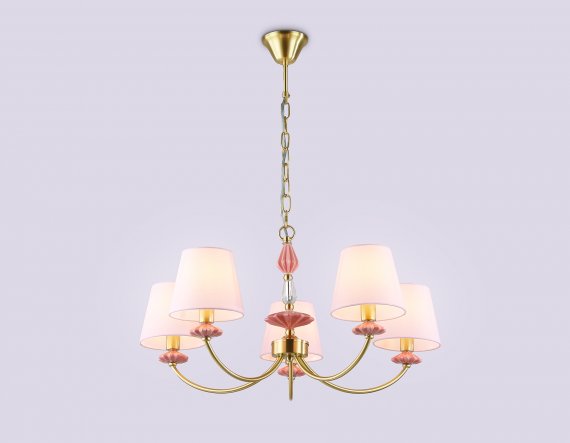 Светильник подвесной LH75024/5 GD/PI золото/розовый E14/5 max 40W D700*780