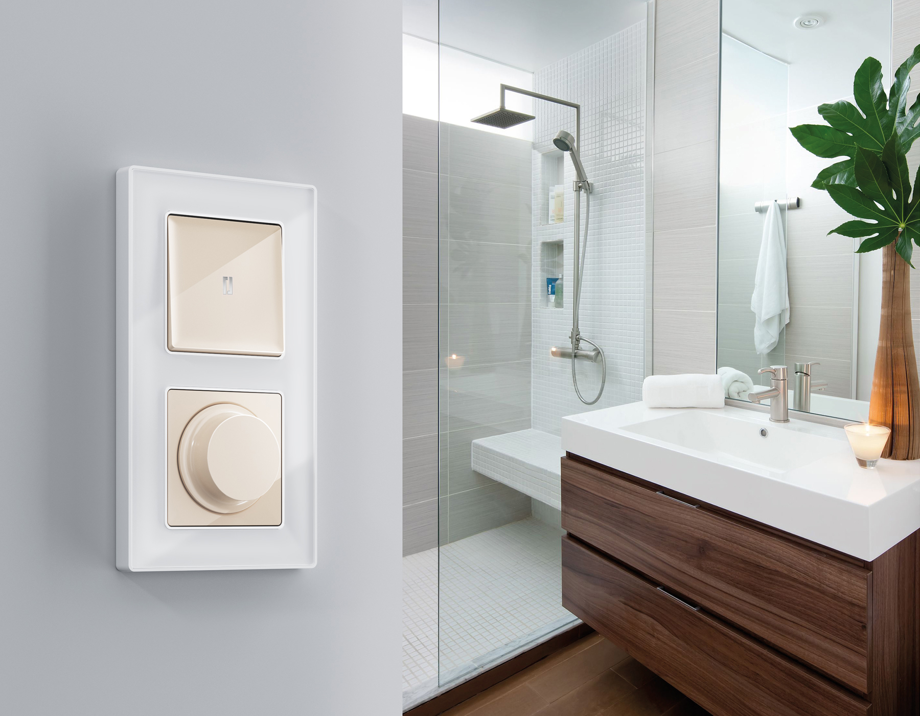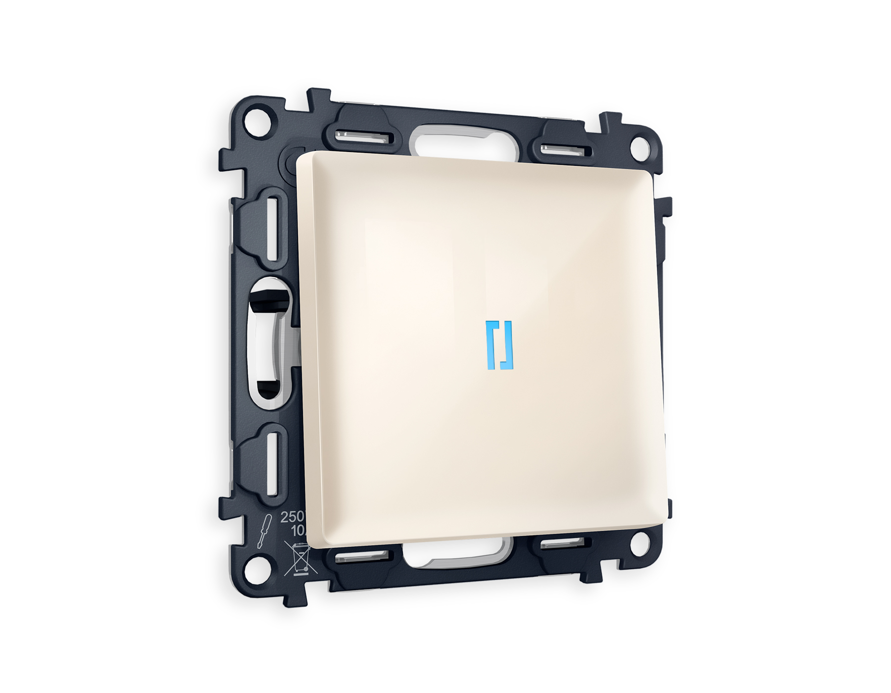 Комплект механизма 1-клавишного выключателя с подсвееткой 10000K (голубой свет) ALFA MA302020 Бежевый глянец 10A-250VQUANT (AP3020, VM101, G17B)