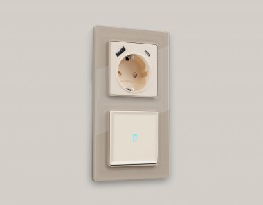 Комплект механизма 1-клавишного проходного выключателя с подсветкой 10000K (голубой свет) ALFA MA322040 Бежевый матовый 10A-250V QUANT (AP3220, VM105, G29B)