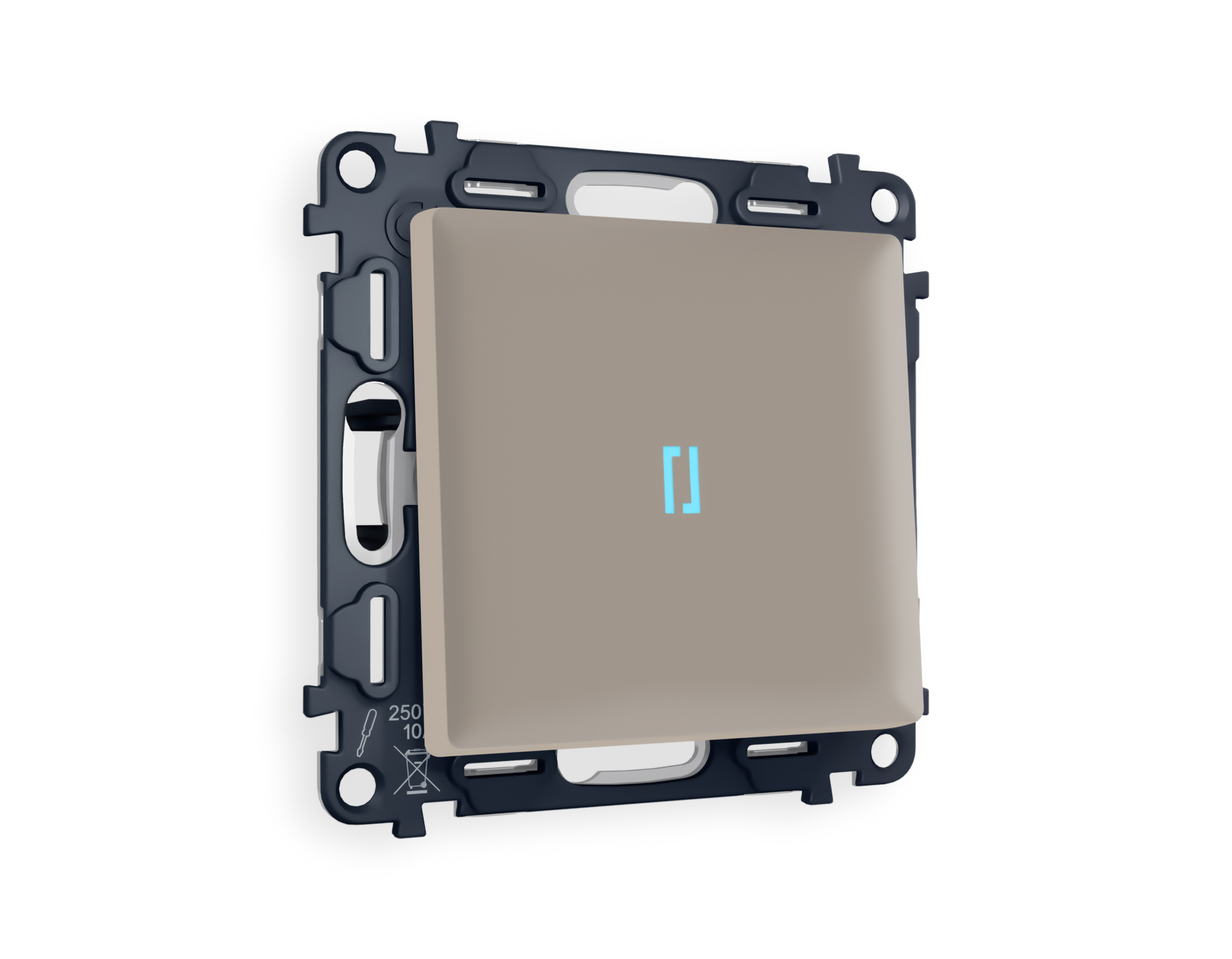 Комплект механизма 1-клавишного проходного выключателя с подсветкой 10000K (голубой свет) ALFA MA362040 Серо-бежевый матовый 10A-250V QUANT (AP3620, VM105, G29B)