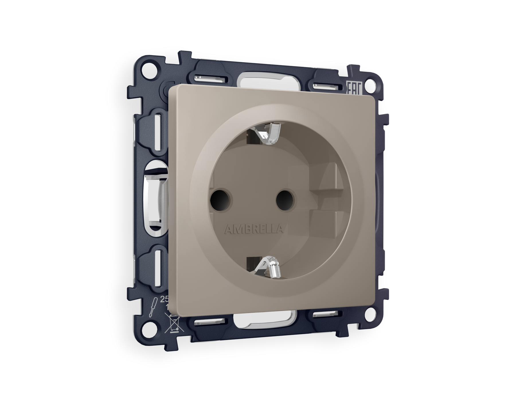 Комплект механизма электрической розетки ALFA MA367010 Серо-бежевый матовый 16A-250V 50Hz 2P+E с заземлением со шторками QUANT (AP3670, VM141)