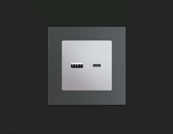 Комплект механизма розетки ALFA MA411010 Серебро глянец 2USB A+C 20W (быстрая зарядка) QUANT (AP4110, VM177)