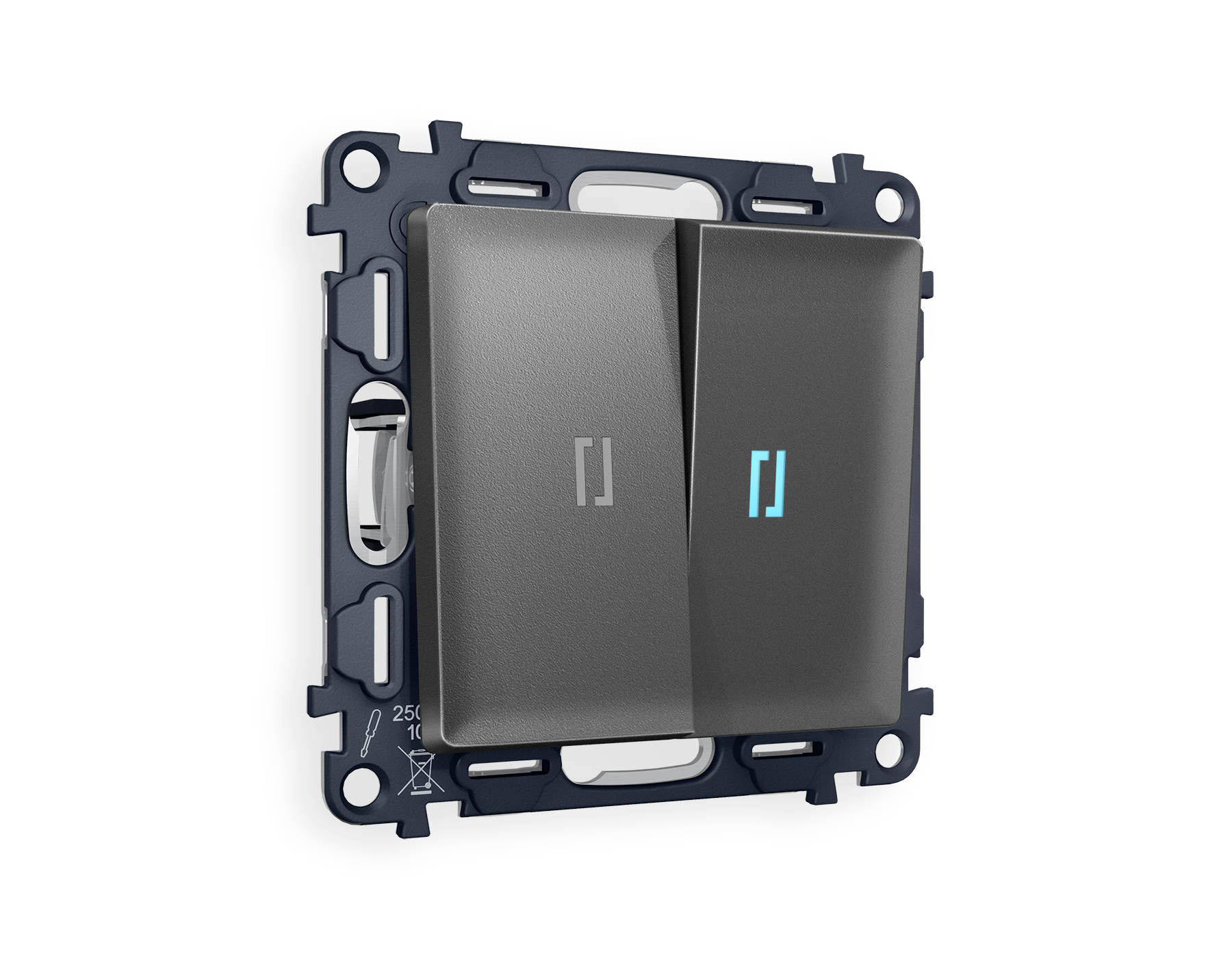 Комплект механизма 2-клавишного выключателя с подсветкой 10000K (голубой свет) ALFA MA654020 Антрацит серый 10A-250V QUANT (AP6540, VM115, G17B)