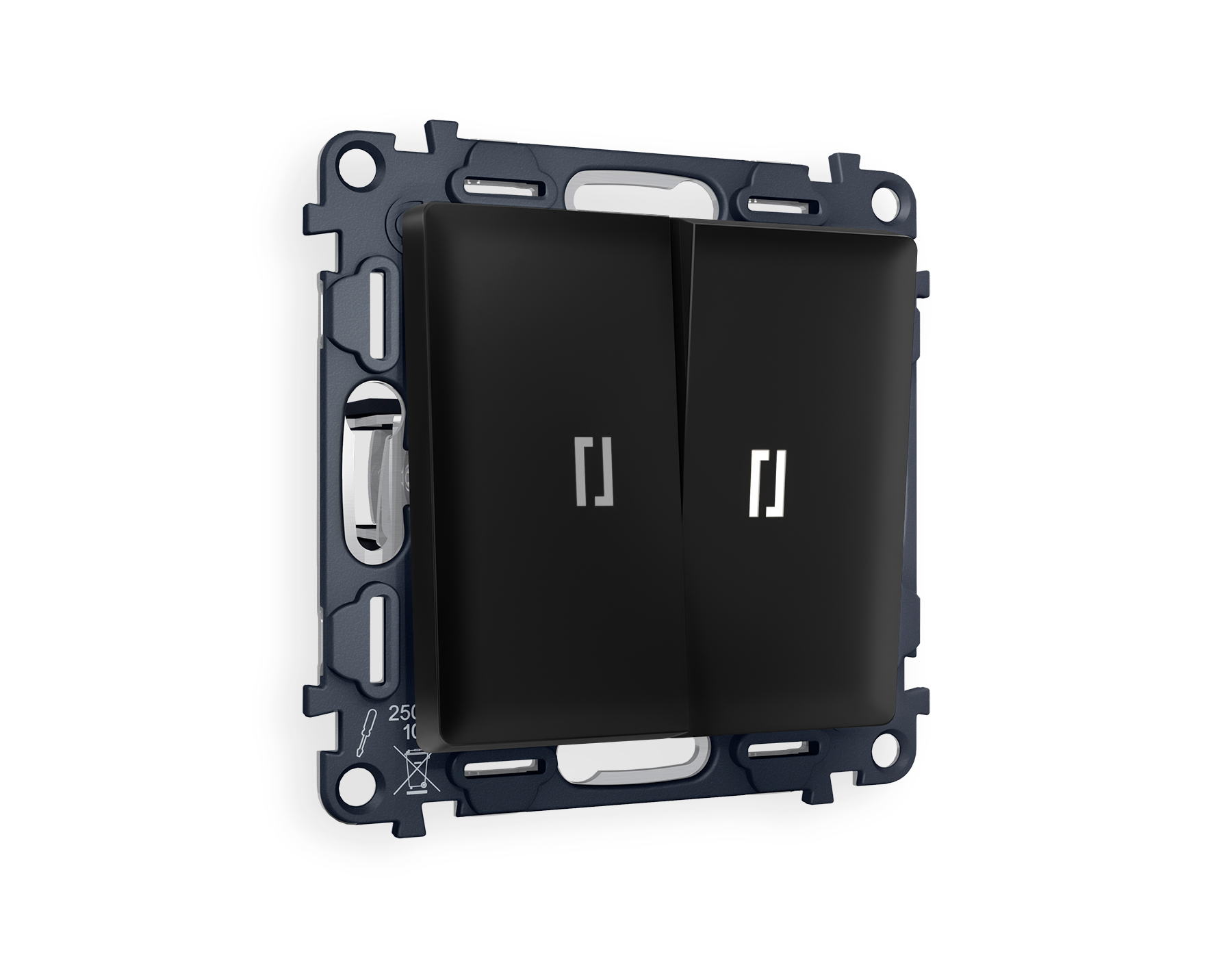 Комплект механизма 2-клавишного выключателя с подсветкой 5600K (нейтральный белый свет) ALFA MA804015 Черный матовый 10A-250V QUANT (AP8040, VM115, G14W)