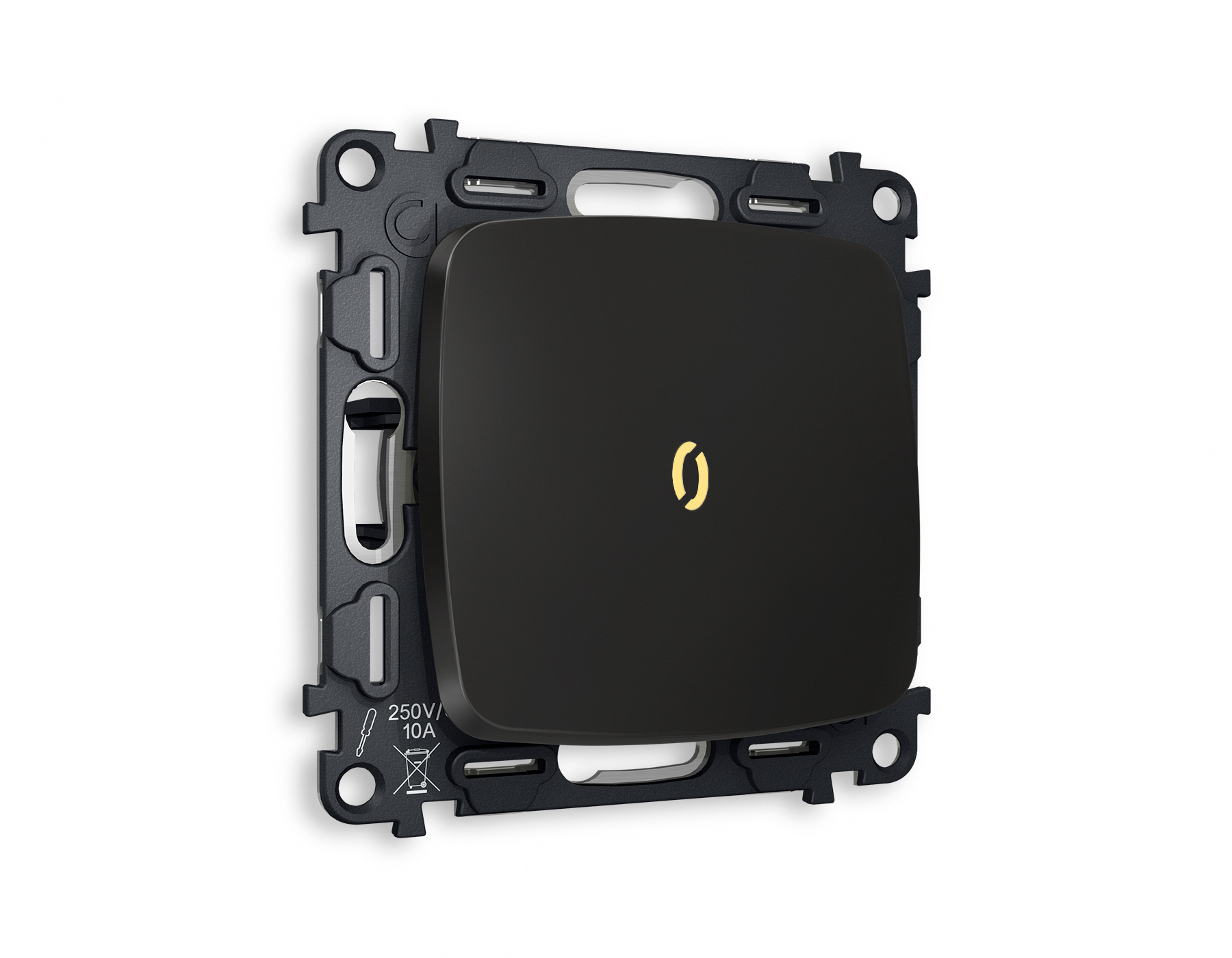 Комплект механизма 1-клавишного выключателя с подсветкой 3200K (мягкий теплый свет) OMEGA MO802010 Черный матовый 10A-250V QUANT (OP8020, VM101, G11Y)