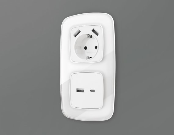 Лицевая панель OMEGA (Белый глянец) для розетки 2USB тип A+C QUANT OP1110