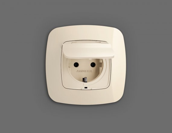 Лицевая панель OMEGA (Бежевый глянец) для электрической розетки с заземлением со шторками и защитной крышкой IP44 QUANT OP3080
