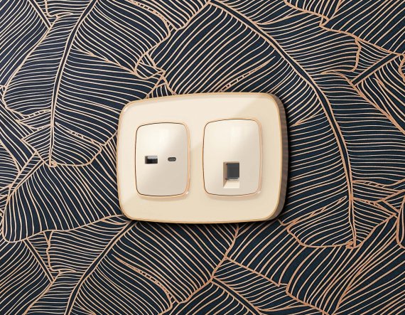 Лицевая панель OMEGA (Бежевый глянец) для компьютерной/телефонной розетки RJ-45/RJ-11 QUANT OP3120