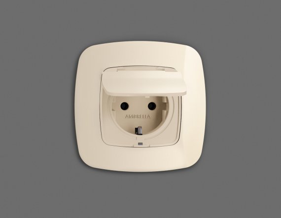 Лицевая панель OMEGA (Бежевый матовый) для электрической розетки с заземлением со шторками и защитной крышкой IP44 QUANT OP3280
