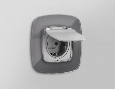 Лицевая панель OMEGA (Серебро глянец) для электрической розетки с заземлением со шторками и защитной крышкой IP44 QUANT OP4080