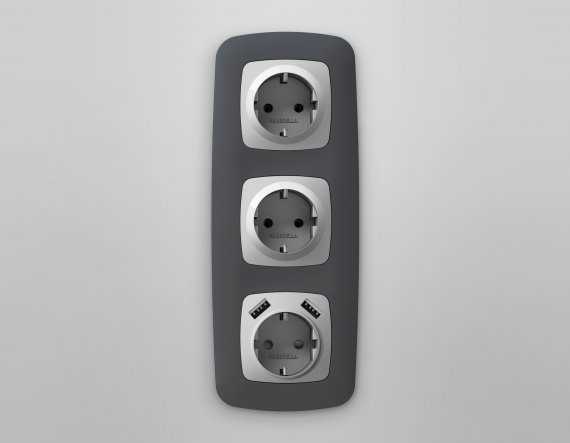 Лицевая панель OMEGA (Серебро глянец) для электрической розетки с заземлением со шторками 2USB тип A+A QUANT OP4090