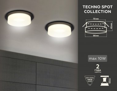 Встраиваемый точечный светильник с акрилом TN1312 SBK/FR черный песок/белый матовый GU5.3 D98*45