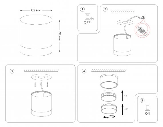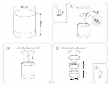Накладной точечный светильник GX53 TN5366 BK черный GX53 D82*70